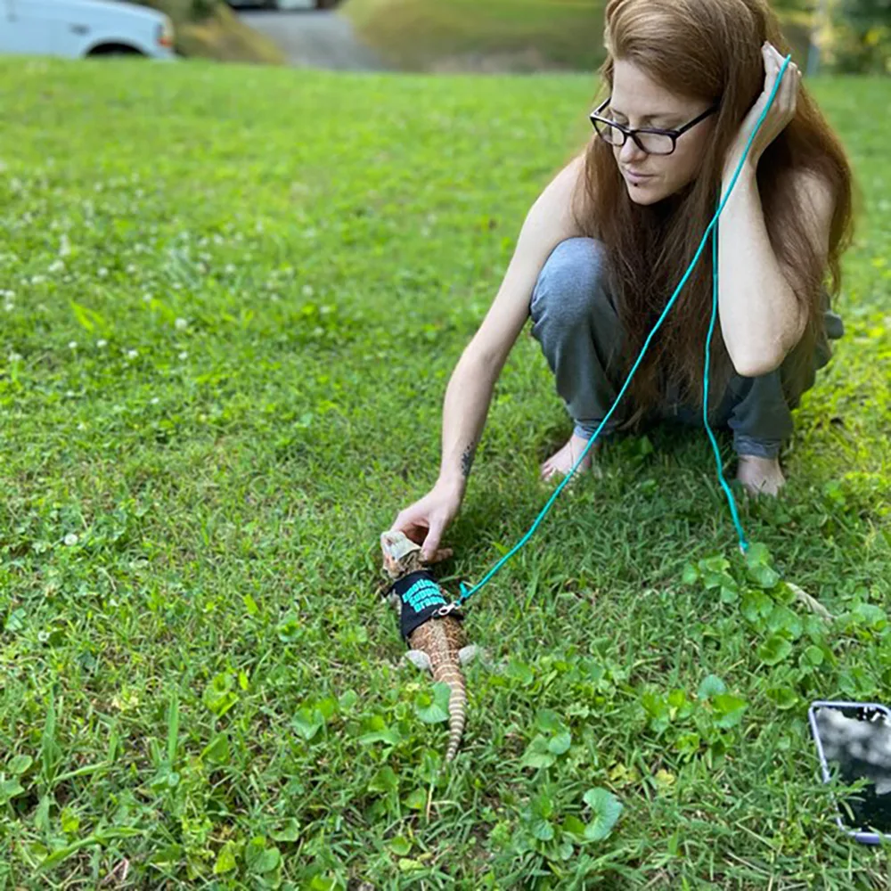 Sistema de ajuste seguro con correas adaptables para el torso de lagartos, camaleones y dragones barbudos.
