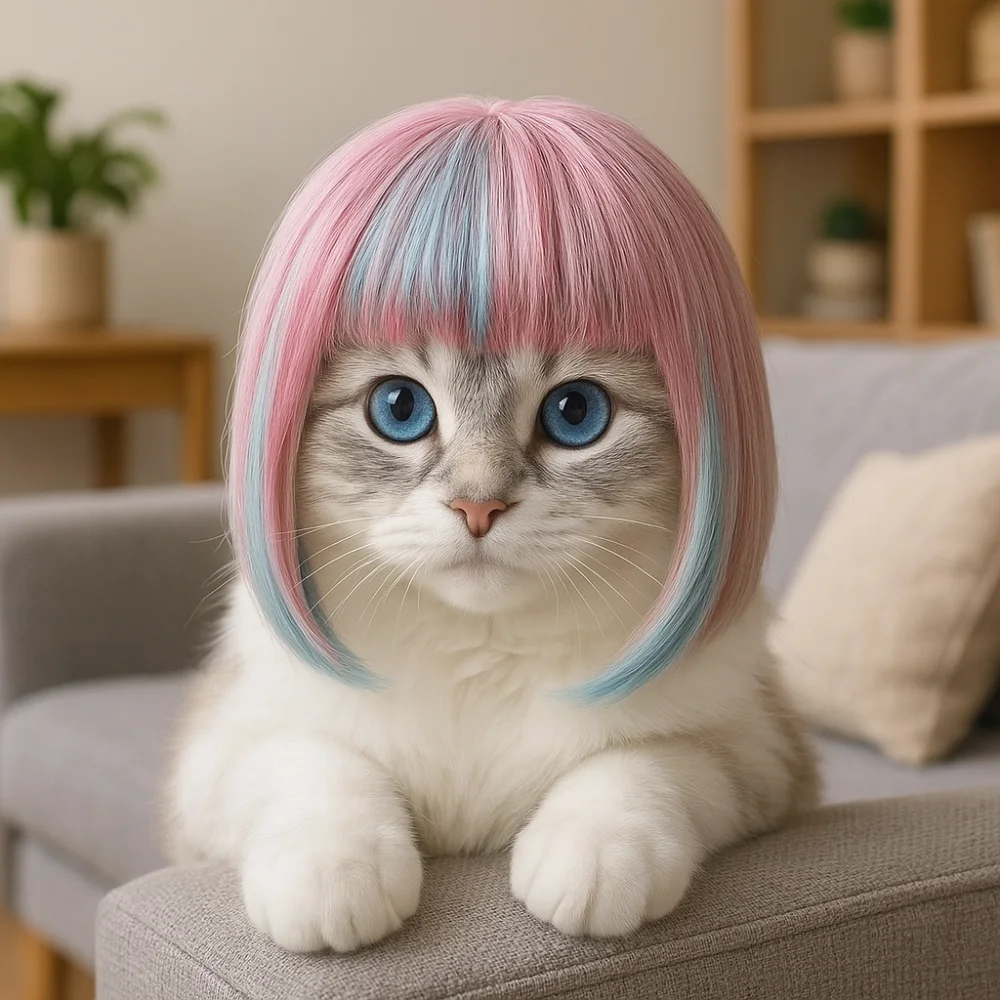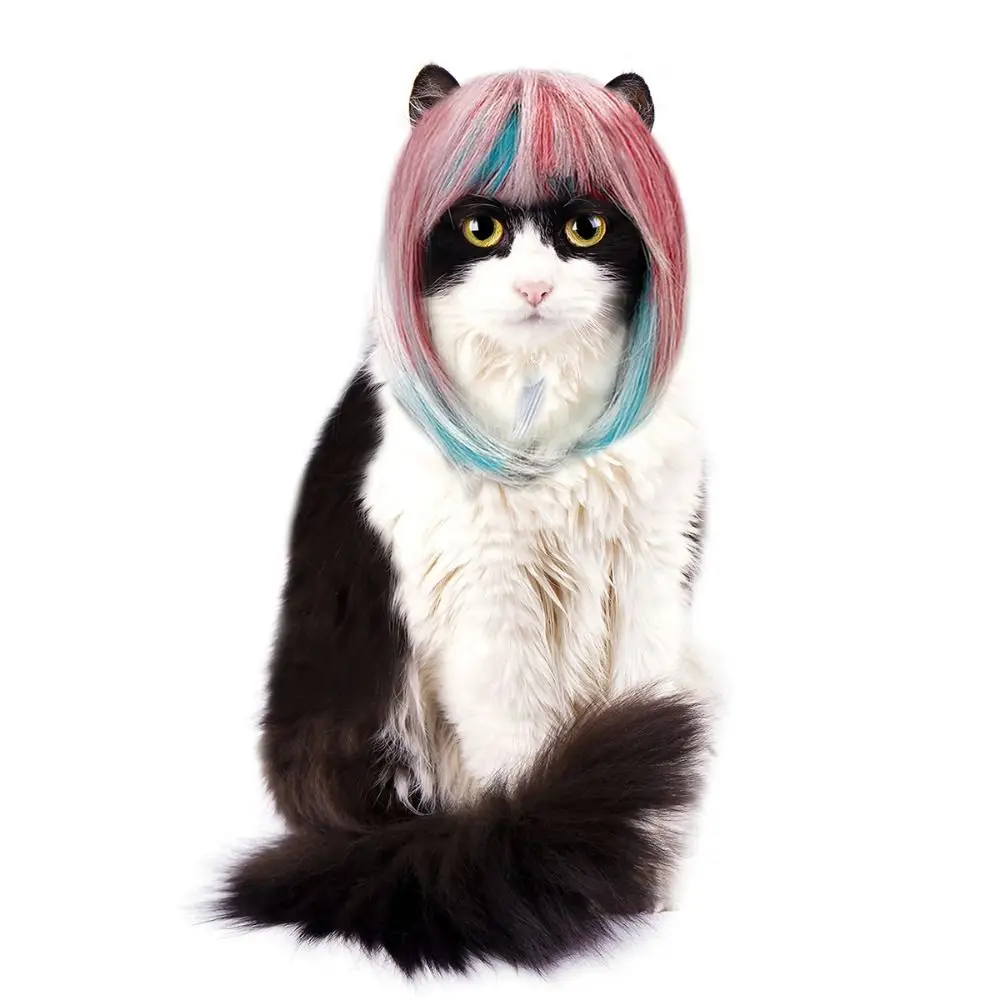 Fantasy Style Long Hair Dog Cat Costume Wig Dream Look Funny Cats Cosplay Wig Colorful Dog Headwear Photography