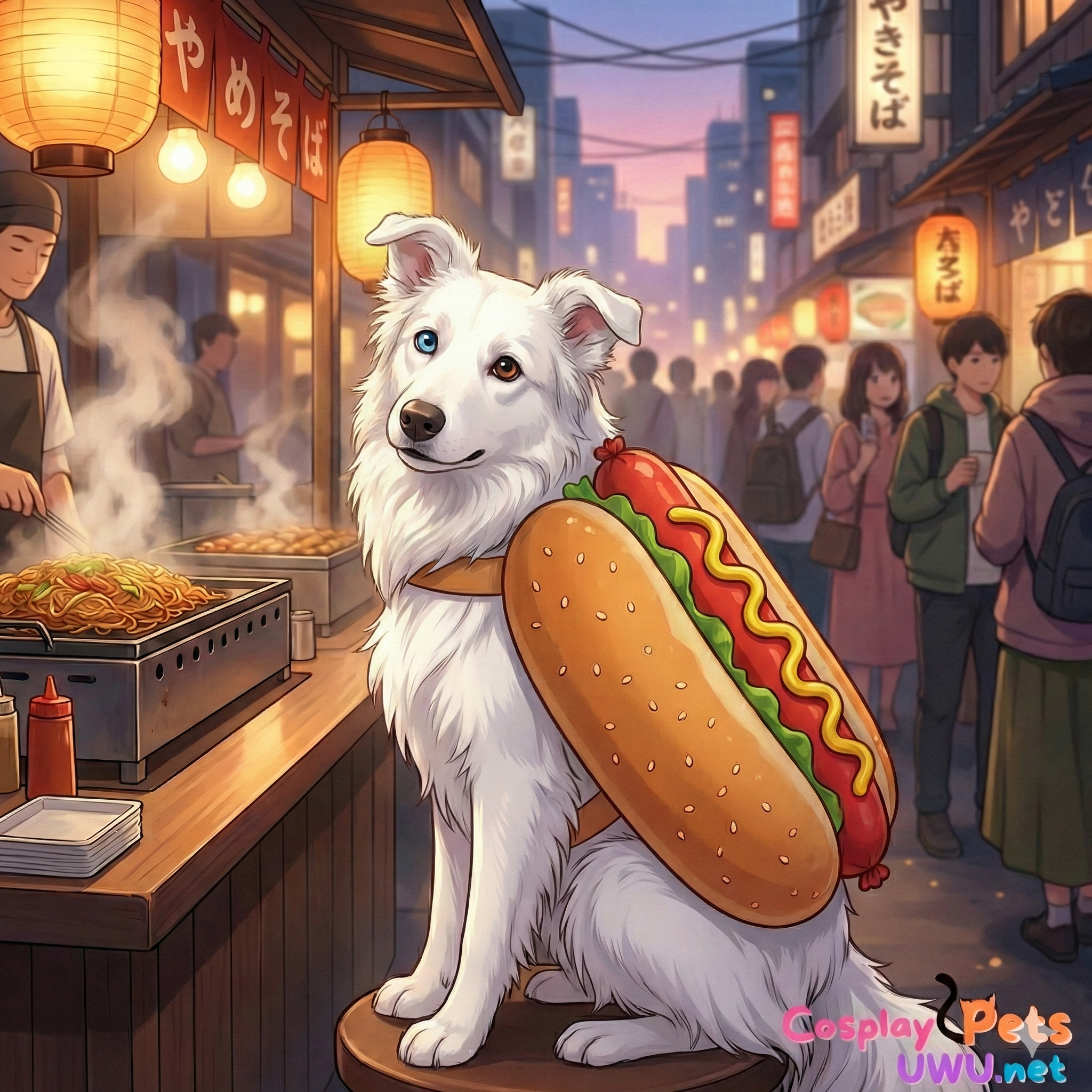 Este accesorio transforma a tu mascota en el bocadillo más tierno de la gran ciudad. Captura la energía vibrante de los puestos nocturnos con un diseño acolchado y colorido.